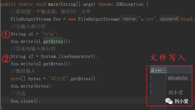 a.txt文件里的内容从abcabcbc变成了刘小爱。