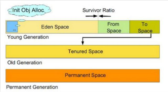 从图中我们可以看出jvm heap区域是分代的,分为年轻代,老年代和持久代。 JVM的堆区对象分配的一般规则: