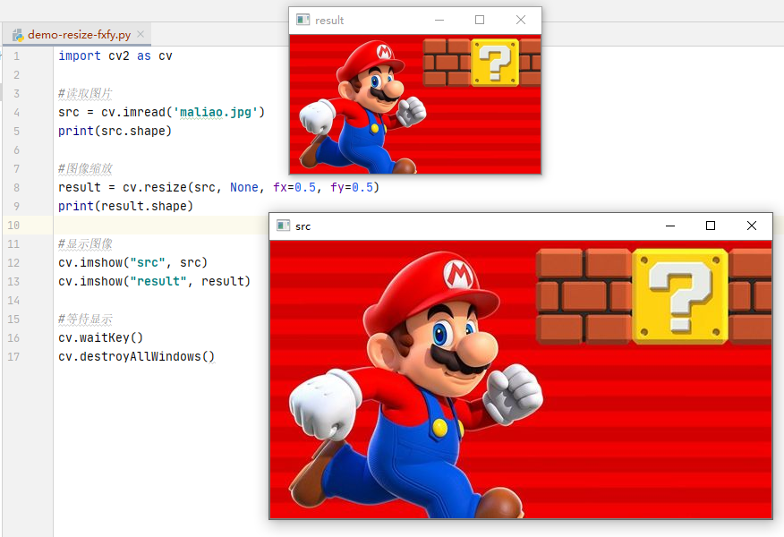 result = cv.resize(src, None, fx=0.5, fy=0.5)