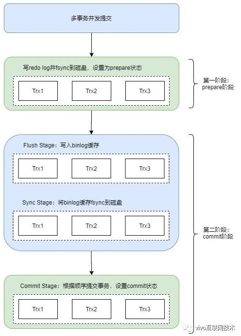 每个Stage都有自己的队列,队列中的第一个事务称为leader,其他事务称为follower,leader控制着follower的行为。每个队列各自有mutex保护,队列之间是顺序的。只有flush完成后,才能进入到sync阶段的队列中;sync完成后,才能进入到commit阶段的队列中。但是这三个阶段的作业是可以同时并发执行的,即当一组事务在进行commit阶段时,其他新事务可以进行flush阶段,实现了真正意义上的组提交,大幅度降低磁盘的IOPS消耗。
