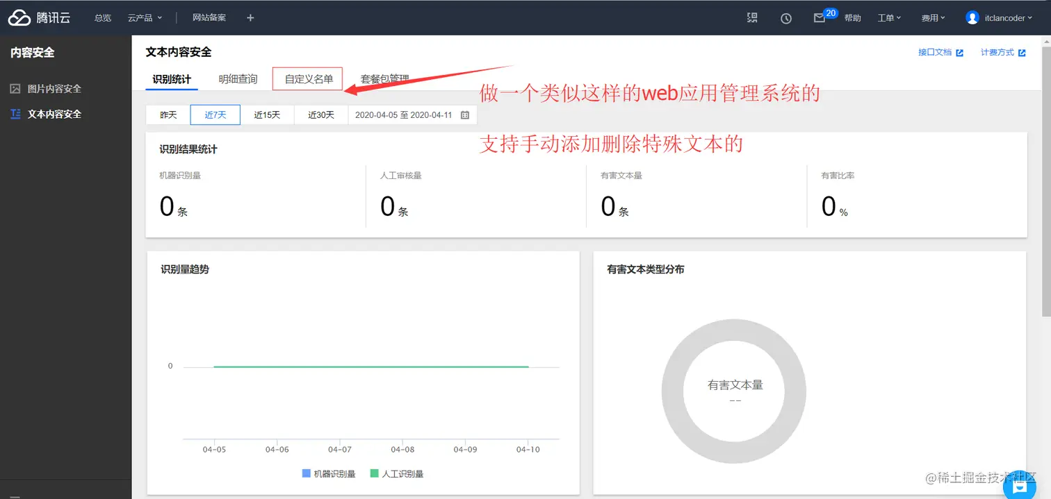 您将在本文中学习到通过云调用的方式对一段文本进行检测是否含有违规内容。