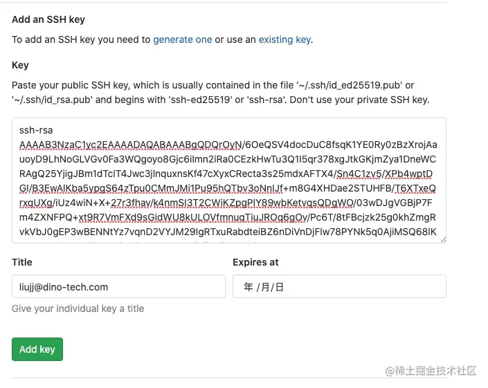 然后 command+空格 打开搜索 /Users/用户名/.ssh/id_rsa.pub (这个在生成秘钥的时候又出现了在终端),打开这个文件,然后就可以查看到gitlab需要的ssh key 了