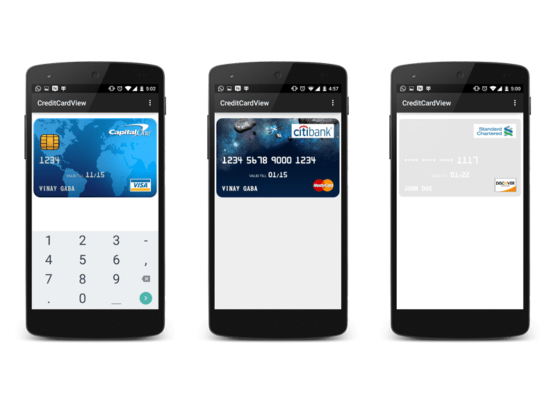 an Android library that allows developers to create the UI which replicates an actual Credit Card.