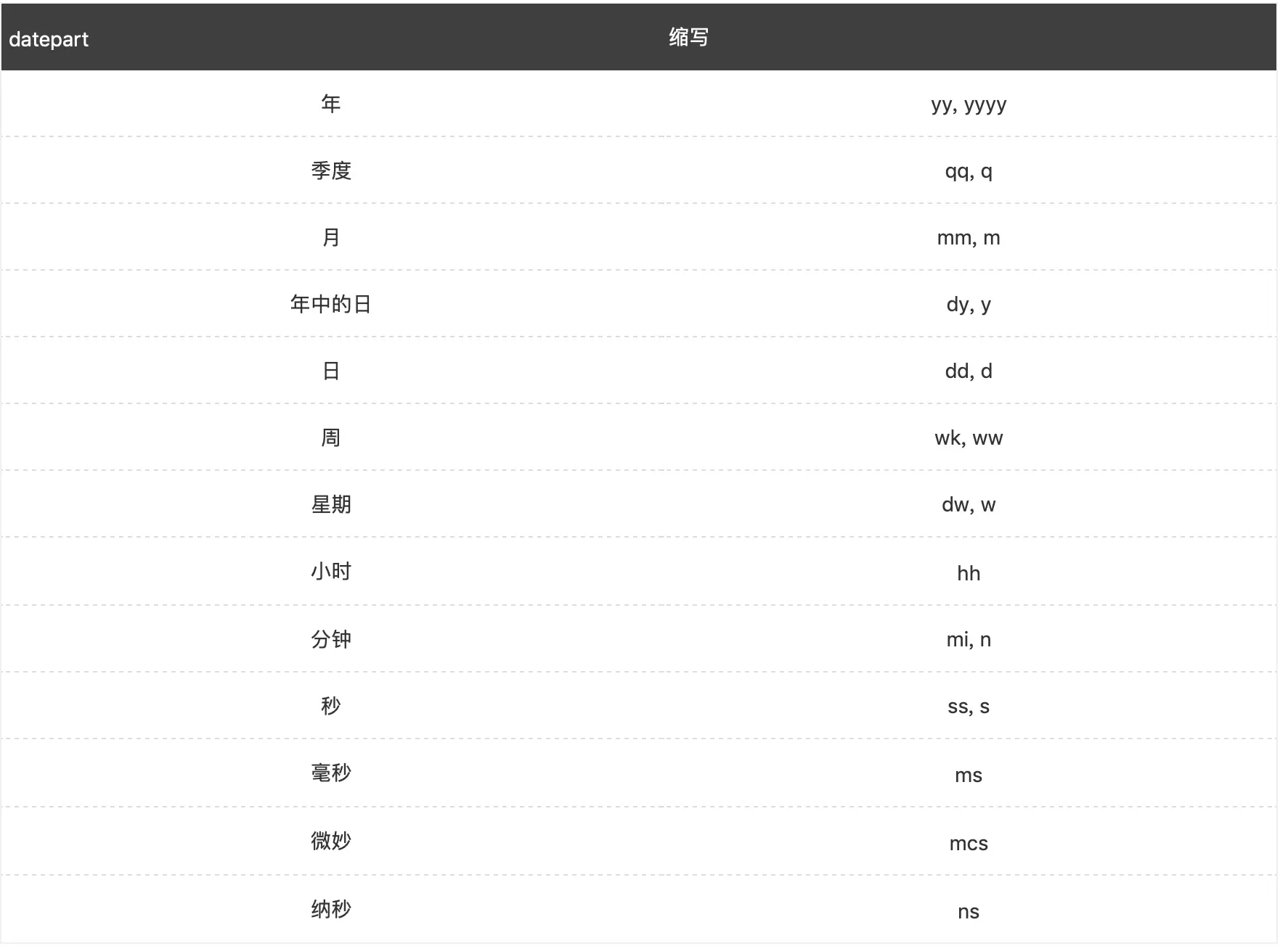 【作用】:DATEDIFF(datepart,startdate,enddate),取出两个日期之间的时间,datapart可以有以下形式
