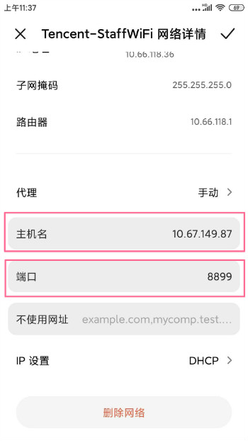 whistle配置移动端代理的整体思路也比较直接,就是将需要调试的移动端设备和开发机连接至同一个网络,然后在移动端设备的网络设置中手动配置代理至开发机上的whisle服务即可。