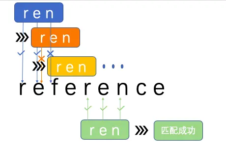举个栗子🌰,使用 /ren/来匹配"reference"的过程:
