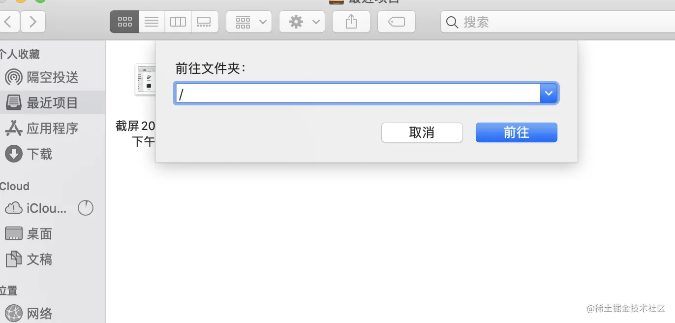 2、打开finder,command+shift+g,输入/