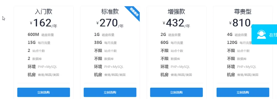 所以我们仍然购买境外的服务器。经过比较,香港的恒创主机非常便宜。