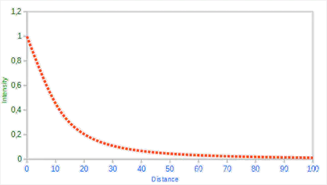 - 一次项会与距离值相乘,以线性的方式减少强度。