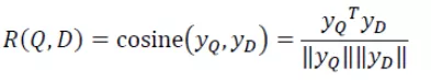 现在我们把query和doc统一转换成了两个128维的语义向量,接下来如何计算它们的语义相似度呢?通过cos函数计算这两个向量的余弦相似度就可以了,公式如下: