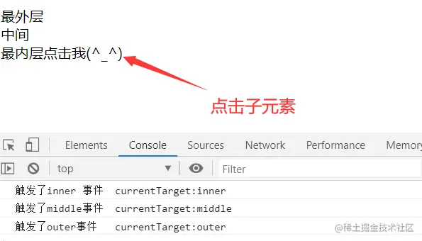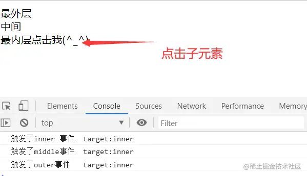 console.log('触发了inner 事件' + " currentTarget:" + e.currentTarget.className)