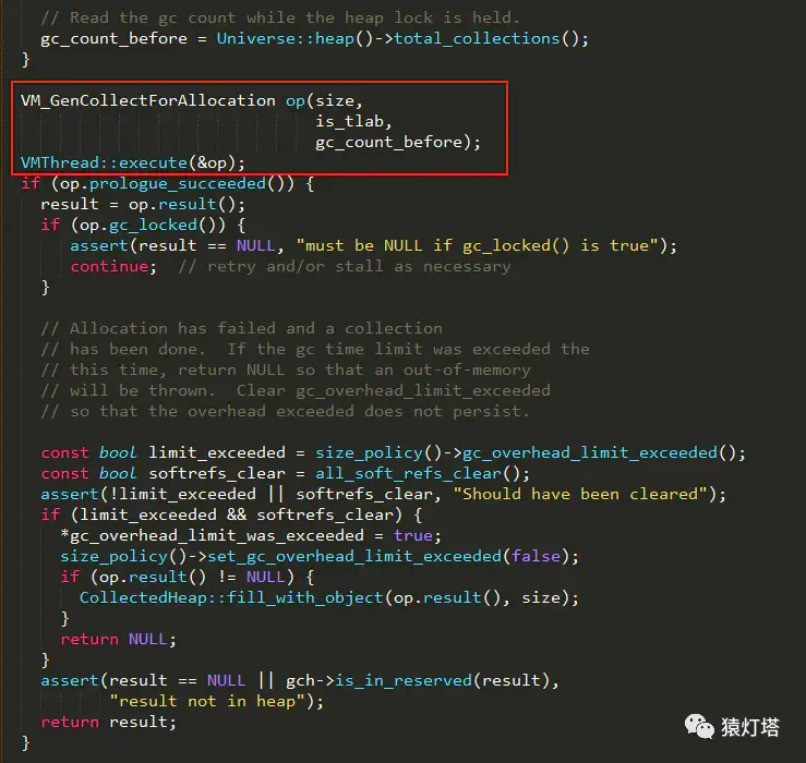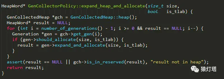 !gch->is_maximal_no_gc()为真,表示新生代或老年代可以进行内存扩展,扩展完成后,再次尝试从各代中进行分配,实现如下:4、如果内存扩展之后还是没有足够的内存满足分配需求,则执行step 5;