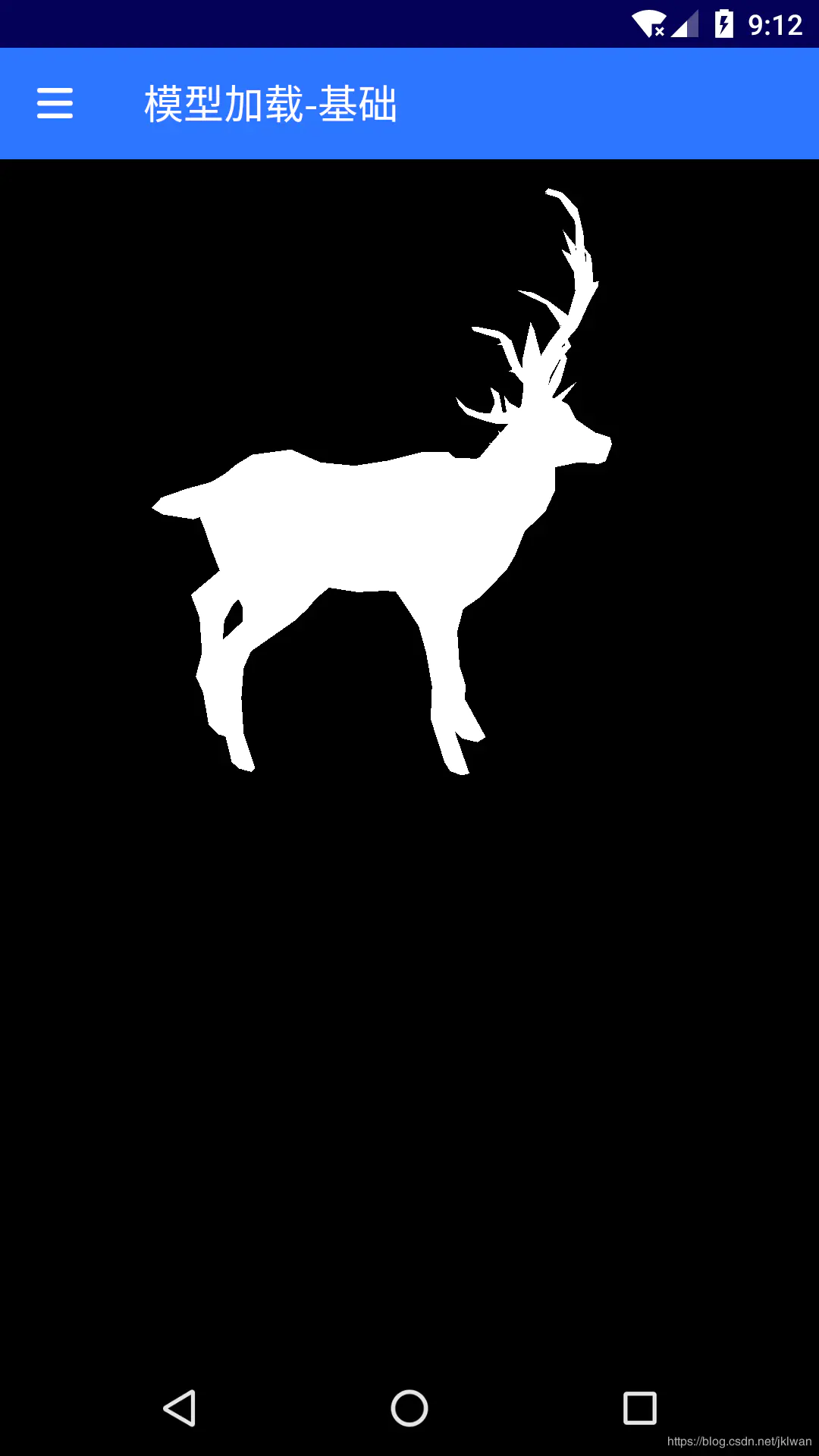 我们先尝试读取这个没有纹理的模型,模型是一只鹿,因为它的顶点比较大,我们设置观察点时需要注意,绘制方面就比较简单了,和绘制三角形没有区别,这里我们设置颜色固定为白色,效果图如下: