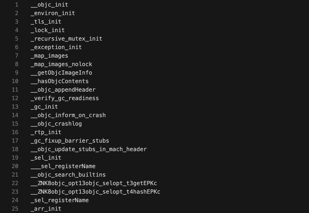打开 libobjc.order,原来只需要填写符号即可。