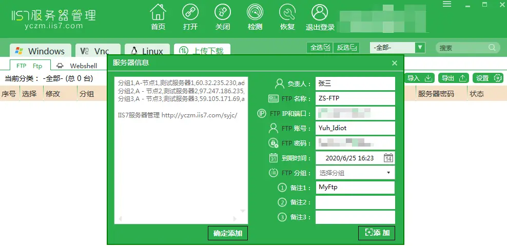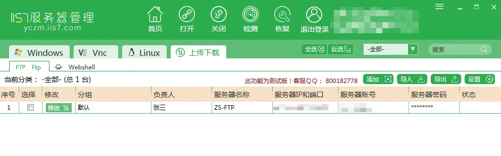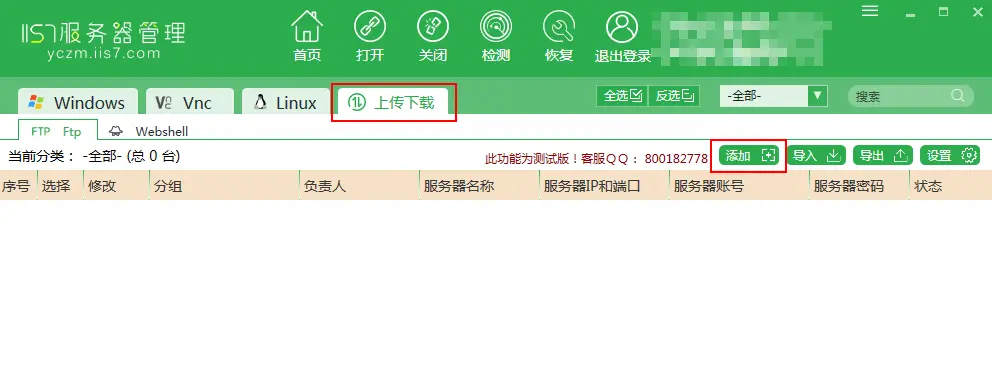 - 首先打开服务器管理工具,切换至上传下载选项后点击上面的添加按钮。