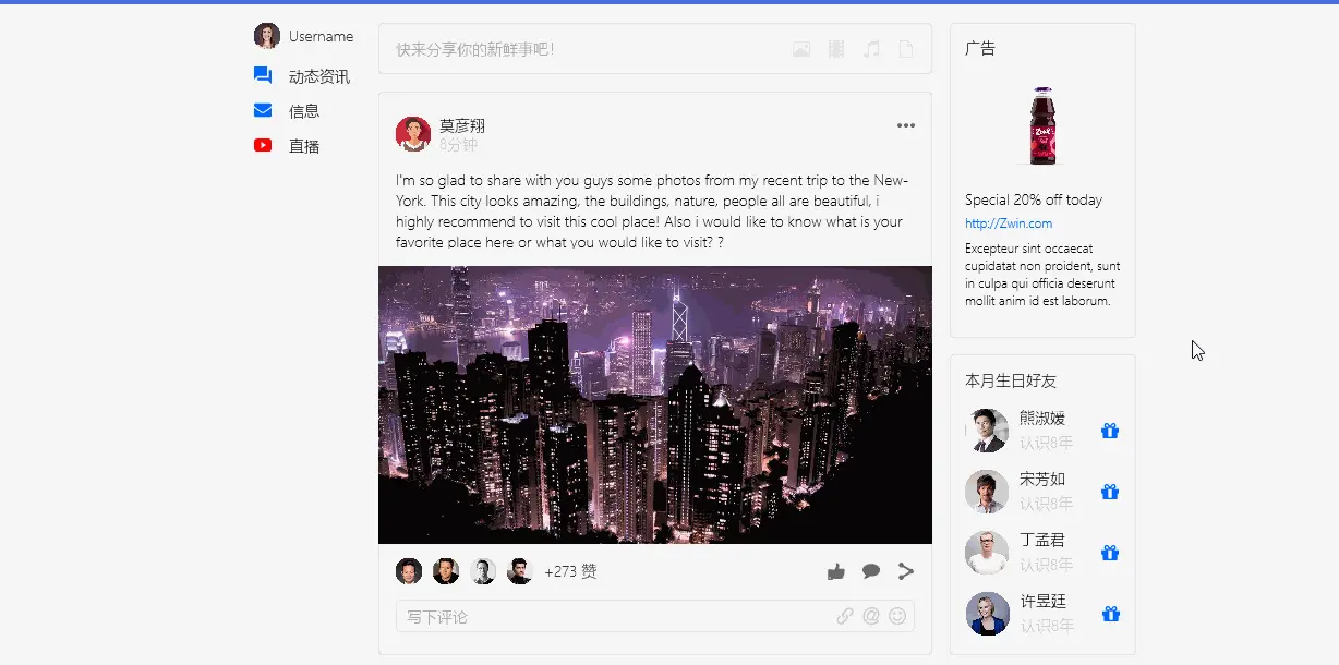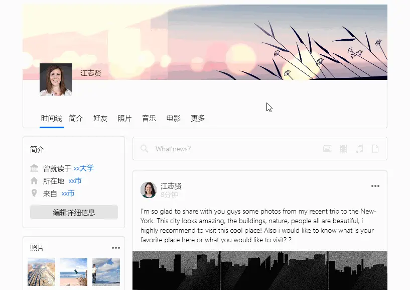 以下是小摹使用Mockplus经典版制作的一款社交网站原型,希望可以作为参考。