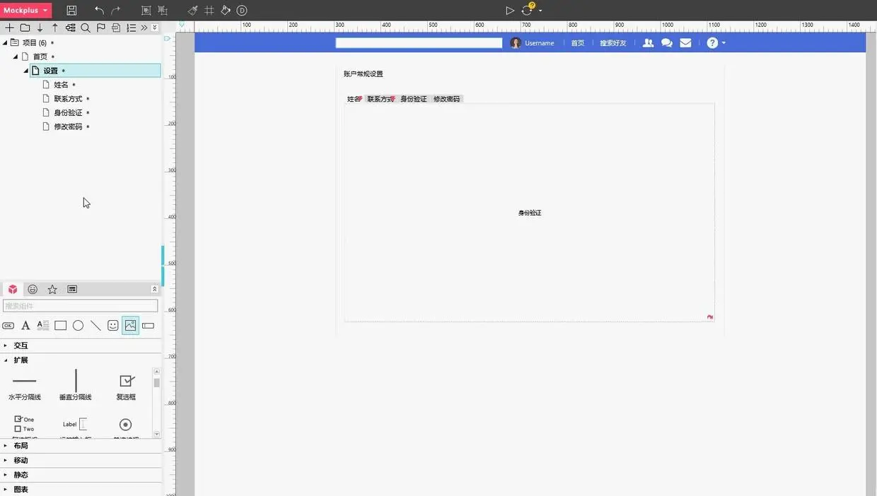 在社交网站的设置版块,除了设置的内容不同,页面的整体框架无需改变。设计这样的页面,我们可以使用Mockplus经典版的内容面板组件来完成。