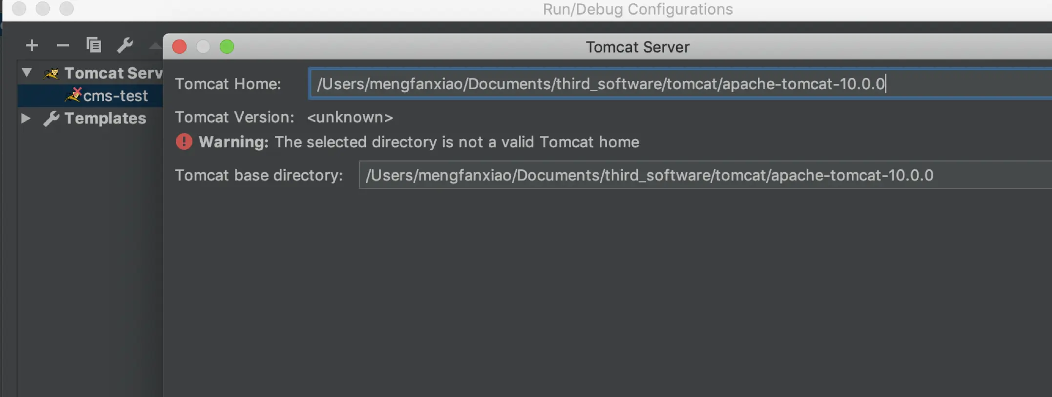 下载tomcat10版本 在idea配置tomcat的时候 不可以;tomcat7是可以的