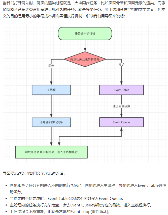 既然js是单线程,那就像只有一个窗口的银行,客户需要排队一个一个办理业务,同理js任务也要一个一个顺序执行。如果一个任务耗时过长,那么后一个任务也必须等着。那么问题来了,假如我们想浏览新闻,但是新闻包含的超清图片加载很慢,难道我们的网页要一直卡着直到图片完全显示出来?因此聪明的程序员将任务分为两类: