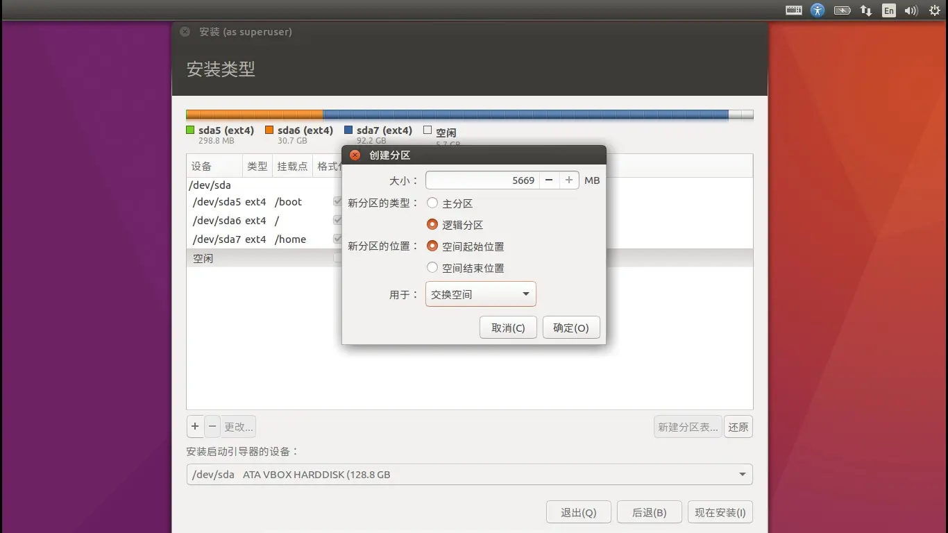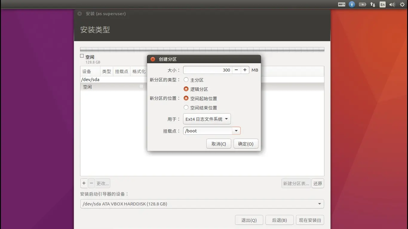 网上有这样的说法,双系统--原本电脑已经有了一个是主分区类型的引导器,这里的/boot选择"逻辑分区"就行了;完全空白的一整块磁盘 /boot 要选择"主分区"。我也没有都试过,不过应该是对的。