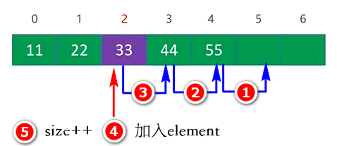 - void add(int index, E element); //在index位置添加元素