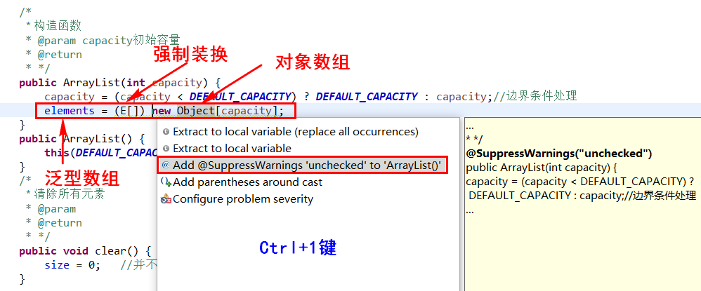 注: a. 我们将默认容量设置为私有静态常量DEFAULT_CAPACITY。其中: