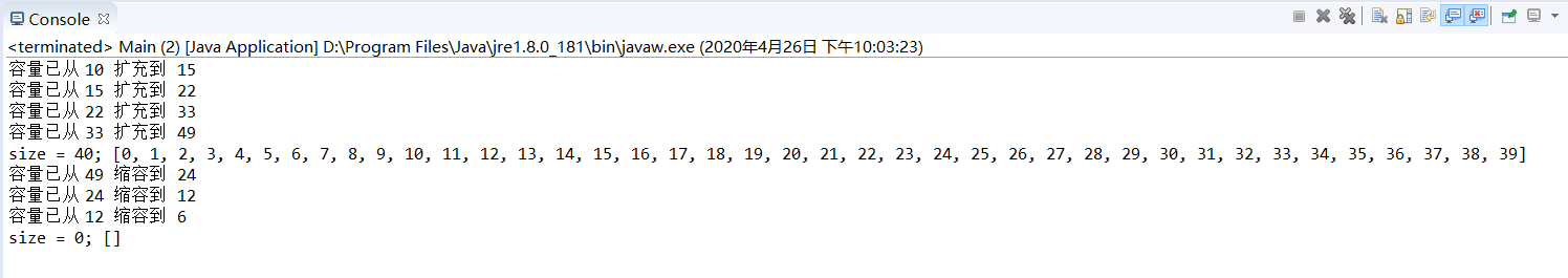 System.out.println("容量已从 " + oldCapacity + " 缩容到 " + newCapacity);