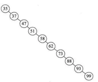 当一段数据是有序的情况下, 通过这些数据构建出一个二叉排序树: