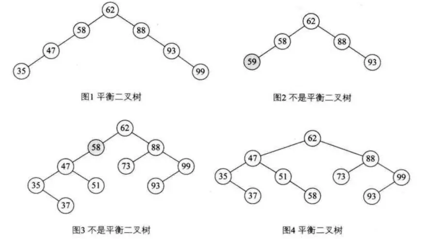 平衡二叉树是一种二叉排序树, 其中每一个结点的左子树和右子树的高度差至多等于1.