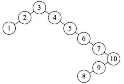 例如对数组 a[10] = {3, 2, 1, 4, 5, 6, 7, 10, 9, 8} 构建二叉排序树
