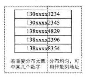 如果用手机号作为关键字, 那么极有可能前7位数字都是相同的. 这个时候就选择用后4位作为散列地址. 并且可以对数组进行反转、位移、相加等操作. 合理的将关键字均匀的分配到散列表.