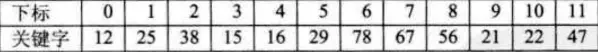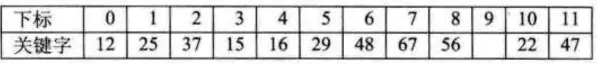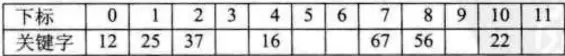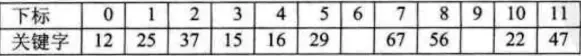例如: 关键字集合为: {12, 67, 56, 16, 25, 37, 22, 29, 15, 47, 48, 34}