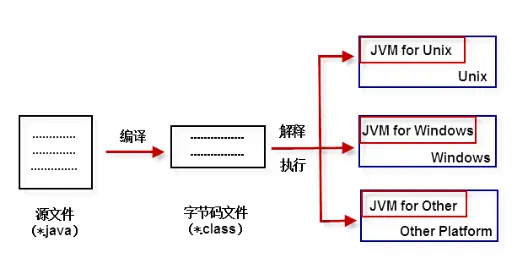 JVM 执行 Java 程序的过程:Java 源代码文件 (.java) 会被 Java 编译器编译为字节码文件(.class),然后由 JVM 中的类加载器加载各个类的字节码文件,加载完毕之后,交由 JVM 执行引擎执行