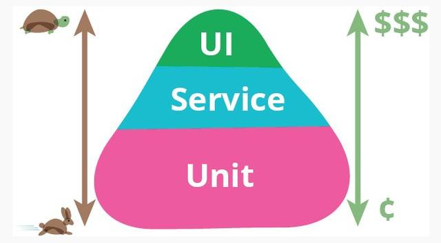 然后是测试分层,其实测试分层是个比较大的话题,单元、集成、接口、UI都可以切入。大部分测试文章都推崇金字塔分层模型,一张经典的图:
