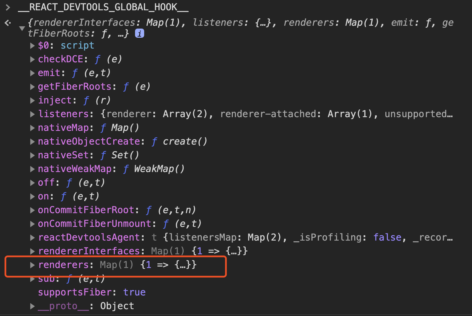 其中的renderers属性指页面使用的渲染器,在网页端就是我们熟悉的React-DOM(在客户端当然就是React-Native啦)
