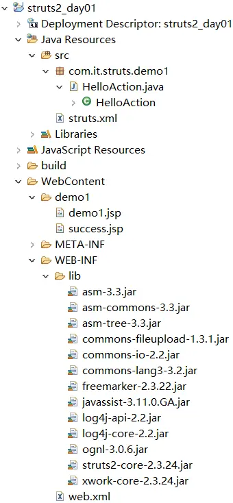 将lib下的jar包全部复制到新建项目struts_day01的lib下(不用build path)