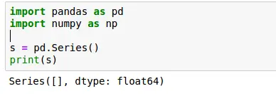 1 2 3 | import pandas as pds = pd.Series()print(s) |