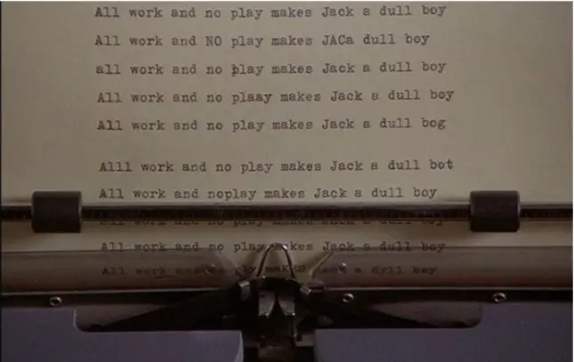 在恐怖电影《闪灵》中,这句话是主人公一直重复的梦魇,让人闻之毛骨悚然。