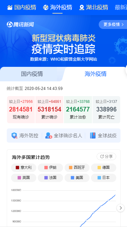 这次我换了新的数据源,来源腾讯新闻的实时数据,站点链接如下: