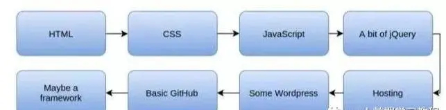 走出这个陷阱的一个方法是制定一个学习路径图。例如,要成为前端开发,你的路径图可能是下图。在将来你能够使用HTML和CSS制作动态页面。