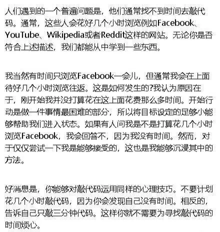 3、就像浏览Facebook、YouTube之类的网站一样,在敲代码前告诉自己只敲几分钟,这样你就拥有了敲代码的时间