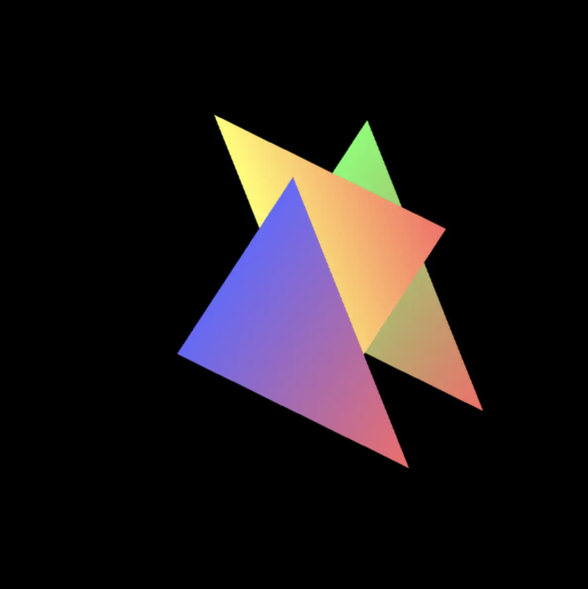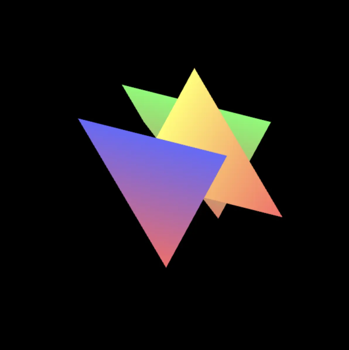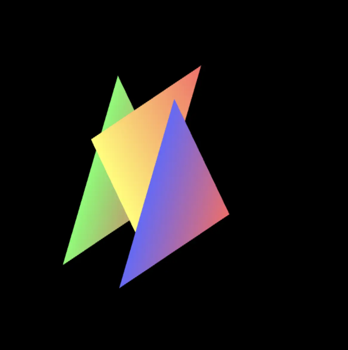 上面的例子中我们定义的三角形信息的顺序是从后向前:绿色三角形→黄色三角形→蓝色三角形,假如说我们把绿色三角形和蓝色三角形的定义顺序交换一下呢?