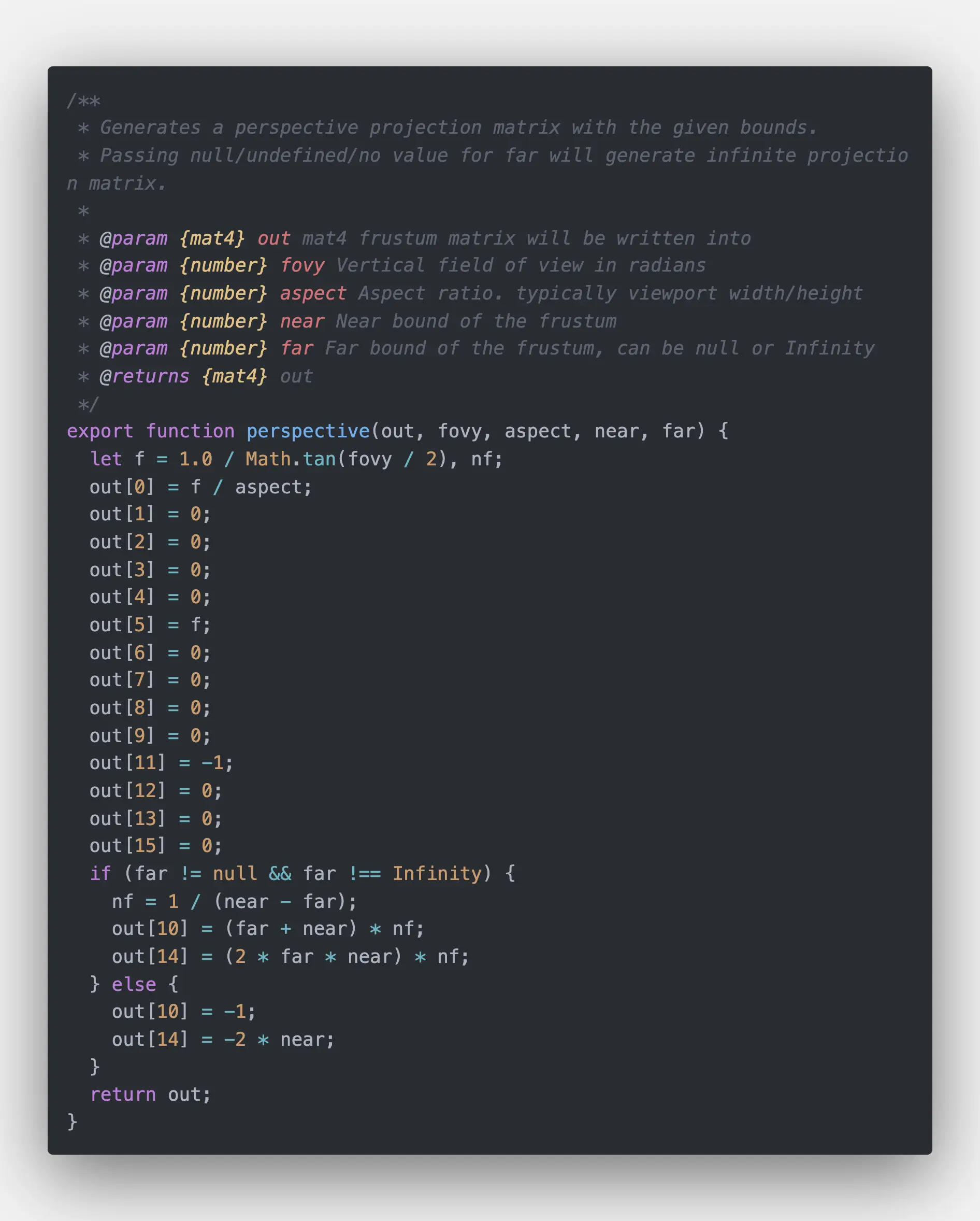 let f = 1.0 / Math.tan(fovt / 2); // 也就等于cot(α/2)
