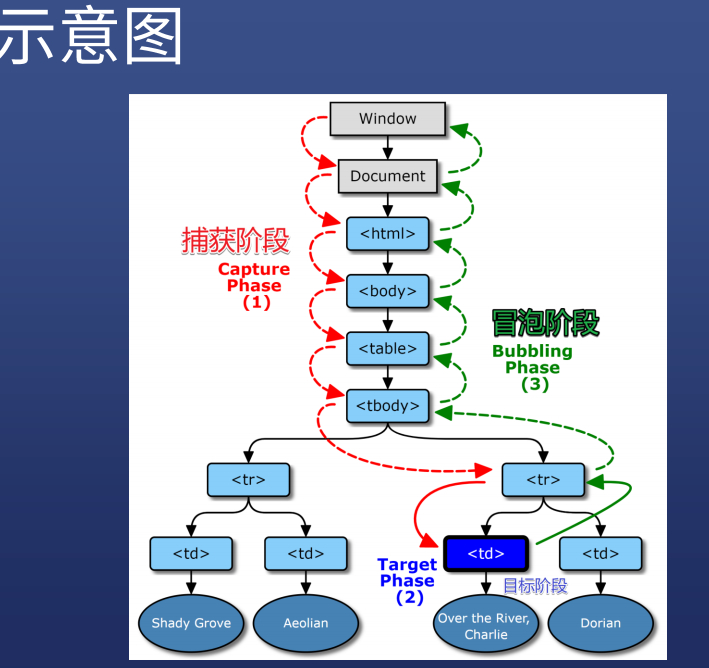 - 点击之后,事件的发生顺序是爷-父-子还是子-父-爷。网景公司和微软观点不一,最后W3C和稀泥,产生如下的观点