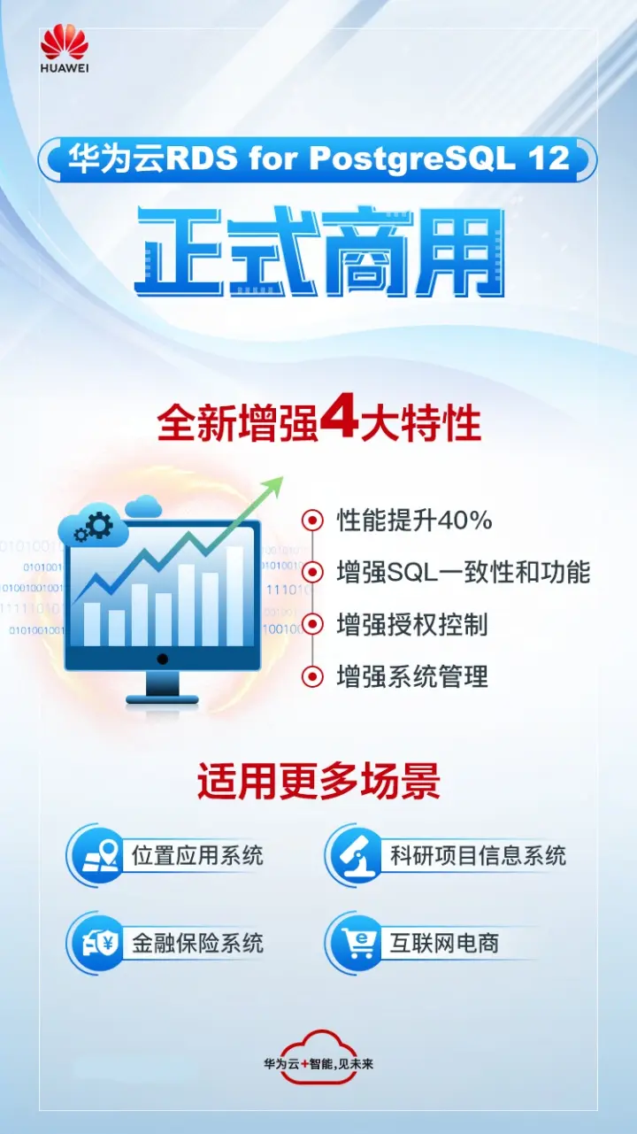 华为云RDS for PostgreSQL 12版本提供了卓越的性能和功能,适用于位置应用系统、科研项目信息系统、金融保险系统、互联网电商等场景。