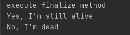 最后打印的结果如上图所示,第一次 gc 的时候,对象被拯救了回来。第二次 gc 的时候,对象就不会再被拯救了,而是直接被垃圾收集器回收。所以 finalize 方法在对象生命周期期间,只会执行一次。