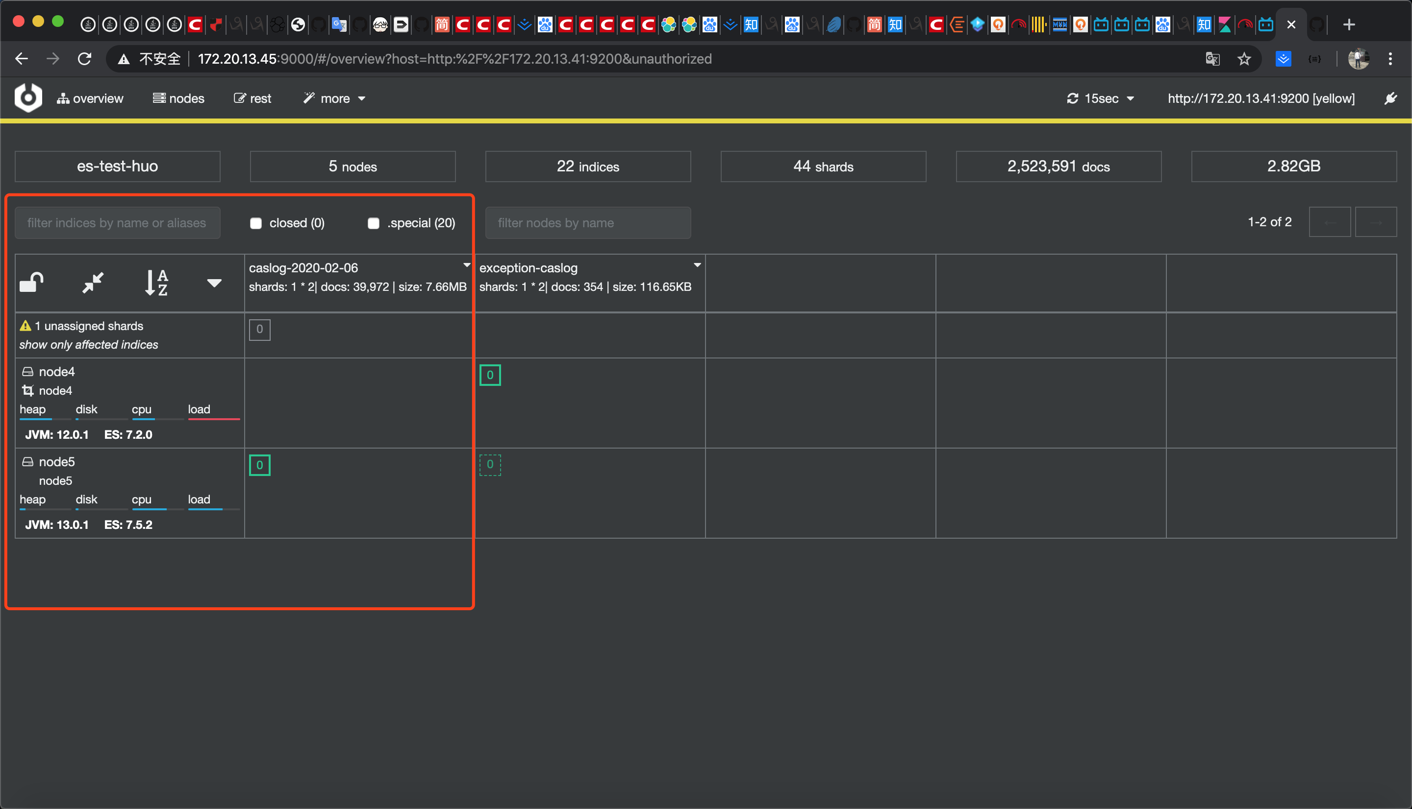 最后一步:可以在cerebro中观察是否集群健康状态为绿色
