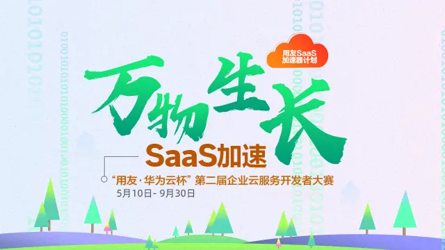 万物生长 SaaS加速 ——“用友·华为云杯”第二届企业云服务开发者大赛,分为初赛、复赛、决赛三个阶段。