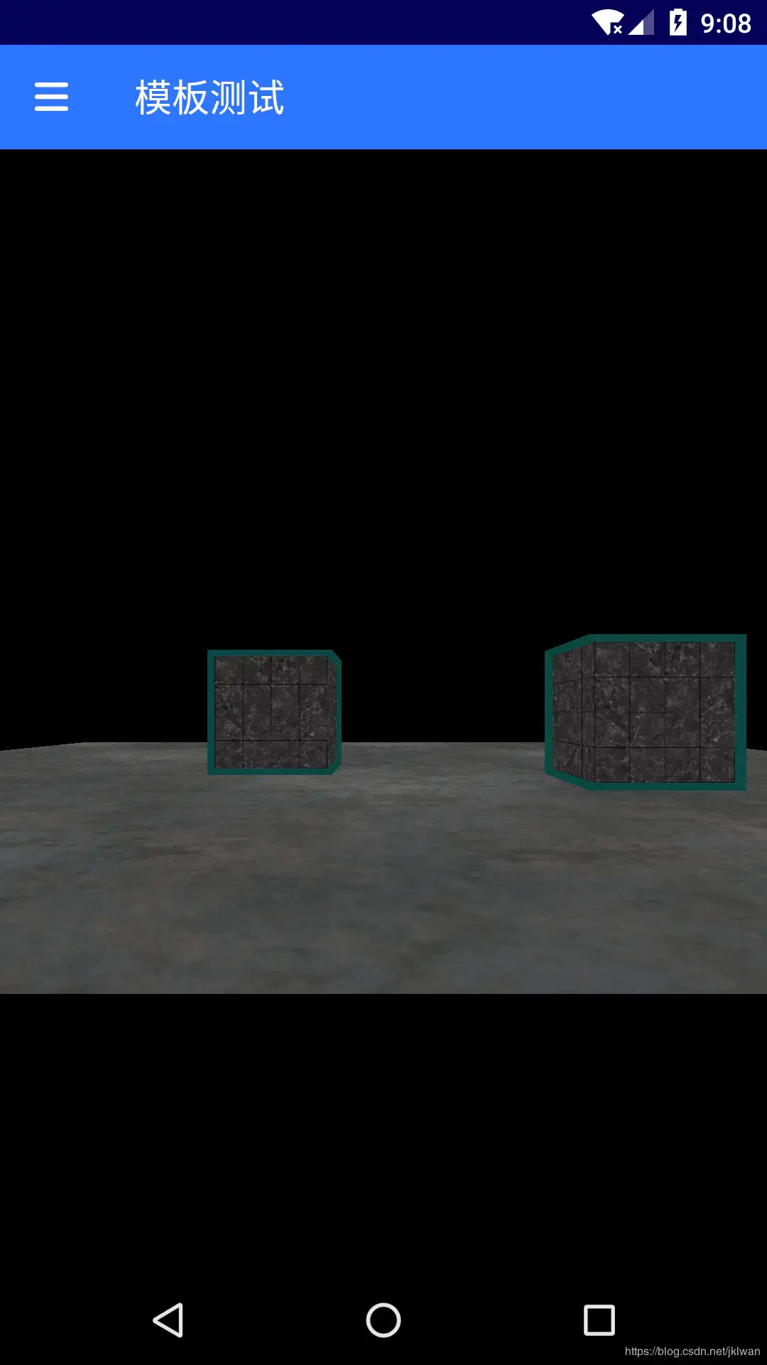 现在实现文档中的效果,先绘制地面部分,设置其不会更新模型缓冲;然后绘制两个箱子的部分,将模板缓冲更新为1;随后禁用模板写入以及深度测试;绘制比两个箱子大的纯色物体,绘制方式设置为:如果重叠部分已经有了则不绘制,只绘制不重叠的部分,显示效果像是两个箱子外套了层。关键的代码: