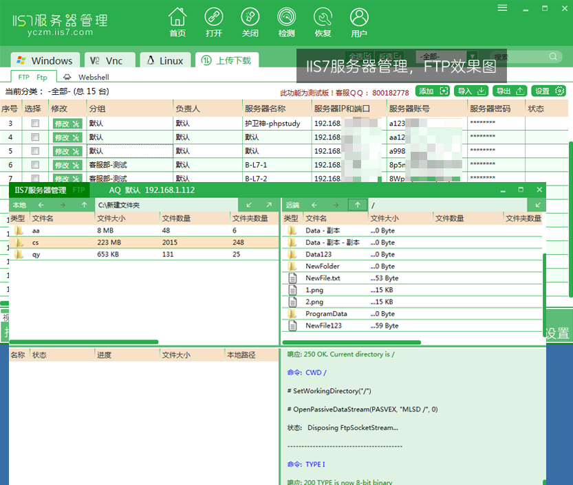 iis7服务器管理工具是一款免费的的FTP软件,支持windows、Vnc、Linux、系统的批量远程控制。对FTP支持挺不错的,而且还可以批量管理多台服务器,支持多窗口。非常方便,推荐使用。